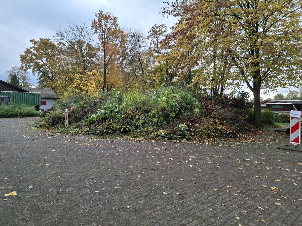 Denn immer wieder machte das feuchte Laub an dem Geäst Probleme beim Schredder. Ebenso auch weitere Grünabfälle, die nicht zum Schreddergut gehören. Mit den teuren Laubsäcken wurde im letzten Jahr auch nicht so umgegangen, wie es angedacht war. Daher sollten diesmal 3 Haufen gebildet werden. Dieses wurde an den Parkplätzen extra mit Beispielen beschriftet.