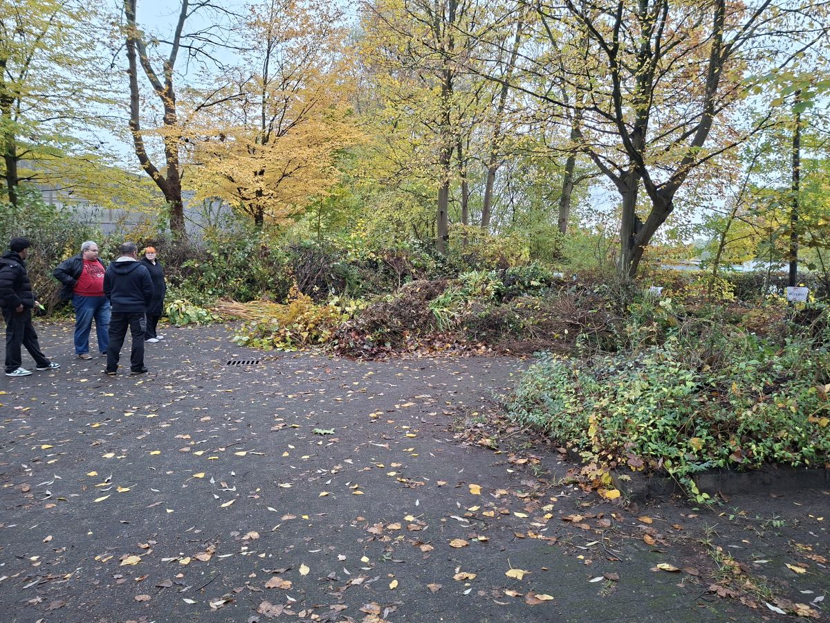 Wie jedes Jahr im Herbst, lag der Schwerpunkt beim Hecken- und Baumschnitt. Aus diesem Grund hatten wir die Gemeinschaftsarbeit extra weiter nach hinten verlegt, damit Ihr genug Zeit davor habt, in Euren eigenen Gärten die Vorarbeiten zu erledigen. Zusätzlich lag die Hoffnung auch darin, dass beim Schreddergut das Laub weitestgehend abgefallen ist.